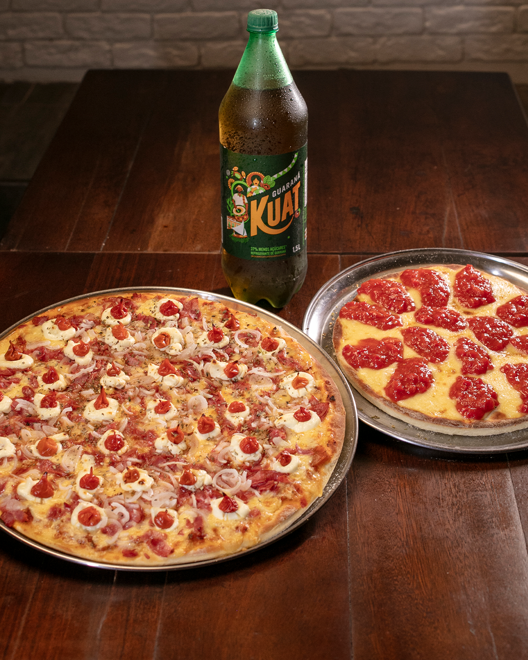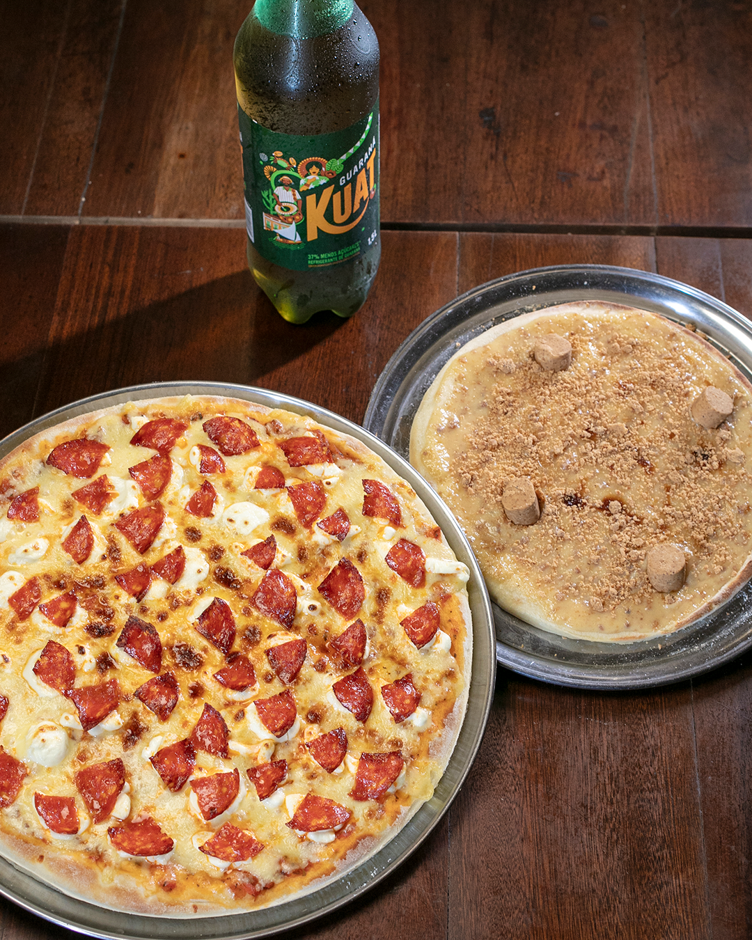 Combo 2: 1 Pepperoni (G-8 fatias) c/ creme de alho da casa (adicional novidade no cardápio) mais uma Pizza Doce Pequena qualquer sabor (4 fatias) e 1 Refrigerante de 1L.