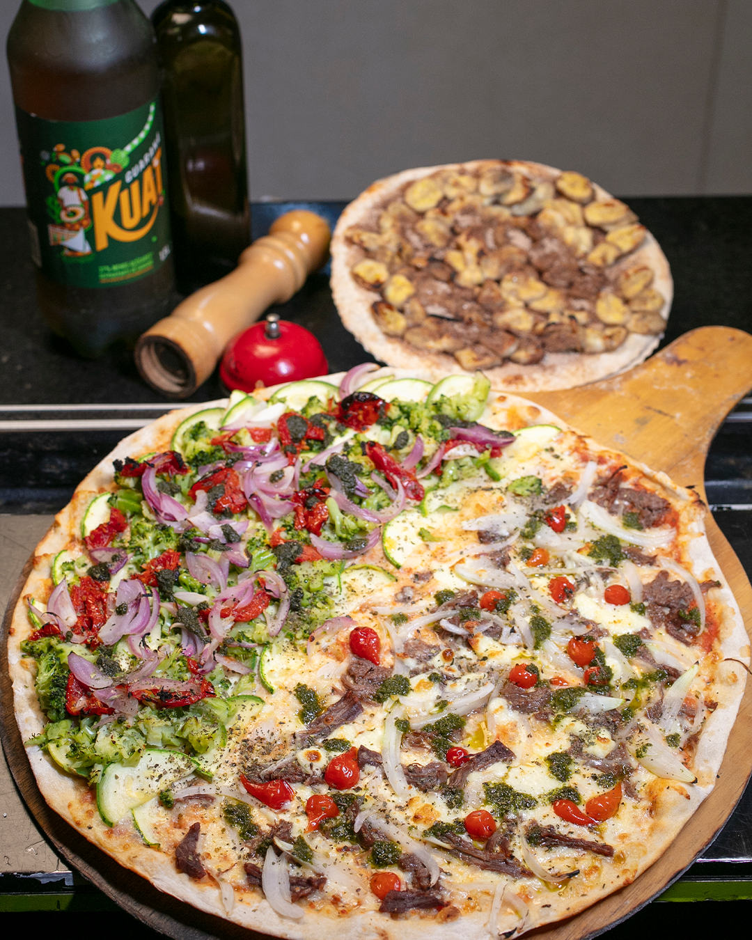 Combo 3:  Pizza metade de mix vegetais e metade sertãozinho e mais uma Pizza brotinho de cartola